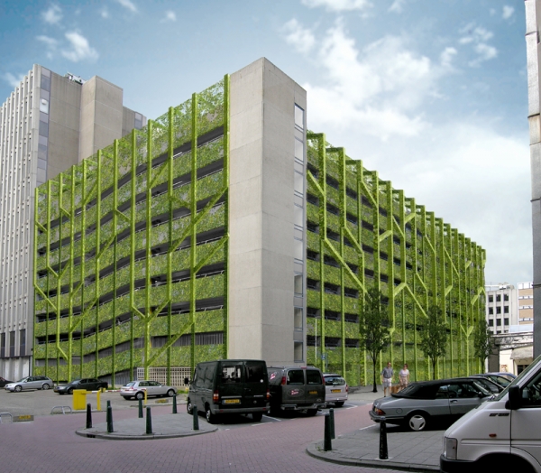 De gevel van de parkeergarage is voorzien van het architectonische groensysteem 'Greenface'. Het systeem bestaat uit een constructie van gaaskorfelementen, voorzien van plantenbakken, met daarin klimplanten die middels een irrigatiesysteem worden gevoed. Verschillende soorten beplanting, kunnen een gevarieerd beeld bieden en de verschillende dieptes van de elementen geven de mogelijkheid vorm te geven aan het groen. Zo is bij het project Greenpark een geabstraheerde boomstructuur in de gevel verwerkt.